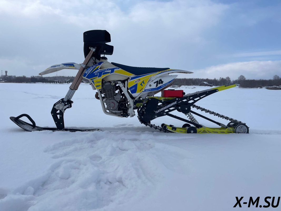 Folk 120 от Snowbike — универсальный гусеничный комплект для внедорожных мотоциклов. Гусеничный мотоцикл (СНОУБАЙК) это, по сути, одноколейный снегоход. Вы получаете возможность продлить мото сезон...