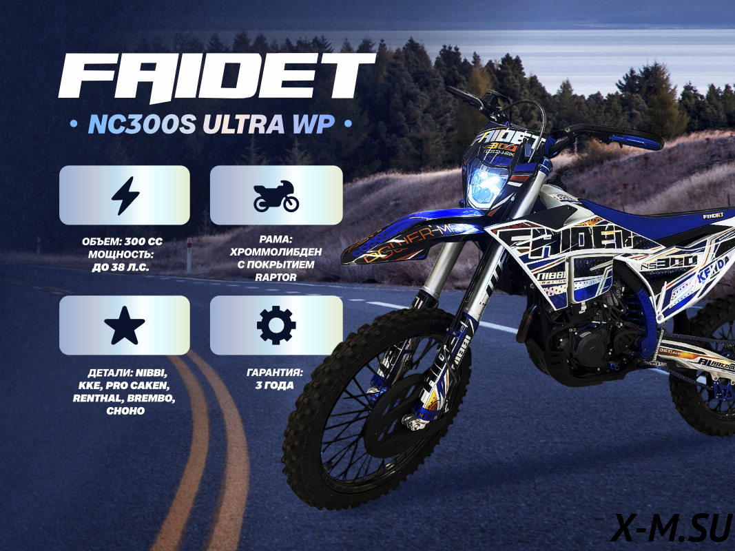 FAIDET NC300S ULTRA - это идеальный баланс мощности, надежности и комфорта. Благодаря легкой конструкции и продуманной эргономике, этот мотоцикл обеспечивает непревзойденную управляемость как на треке, так и на бездорожье.