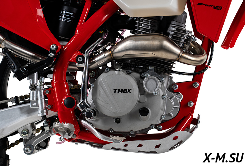 Сердцем TMBK Sprinter 300H является 4-тактный 300-кубовый двигатель LC YB300H мощностью 27,5 л.с.. Благодаря небольшому весу 118 кг — мотоцикл легко разгоняется до 135 км/ч. Мотор позволит вам мгновенно ускориться и контролировать мощность в любой ситуации — будь то крутой подъём или резкий поворот. Заводская защита картера бережет двигатель от ударов камней и веток, а высокий клиренс в 320 мм позволит уверенно штурмовать реки, горные ручьи и другие коварные участки трассы, не беспокоясь о повреждениях.